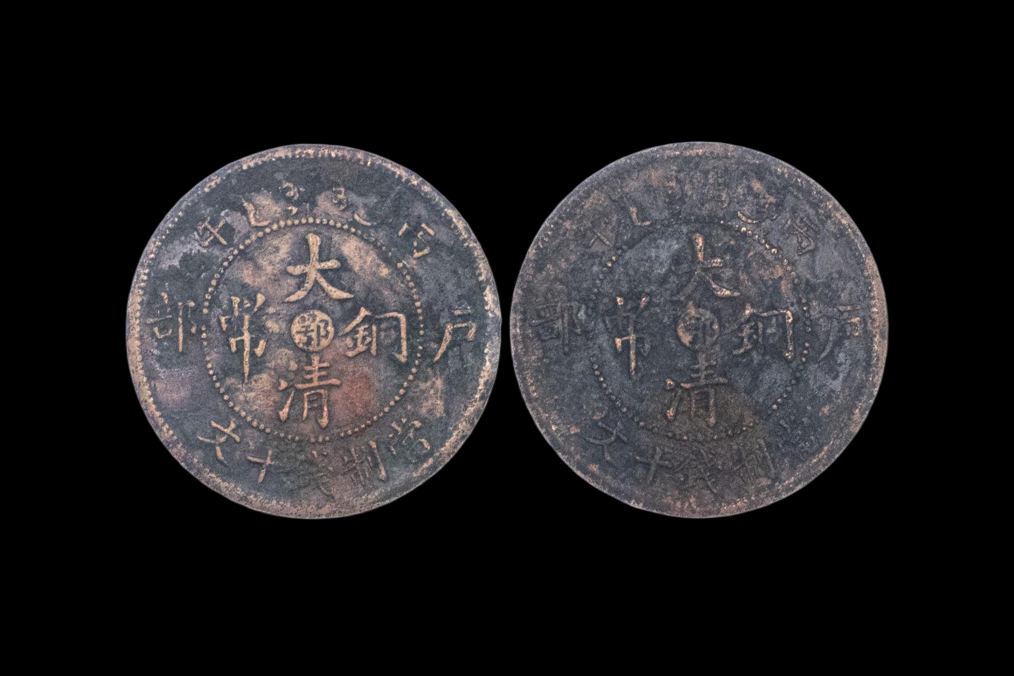 从历史背景看,晚清时期,为整顿币制、适应近代经济发展,清政府推行铜元铸造,“大清铜币”系列应运而生。“鄂”字代表湖北省造,湖北作为晚清重要的工业与经济区域,其铸币工艺与规模在全国位居前列。这两枚铜币便是湖北铜元局遵循中央规制铸造的货币,见证了清末中央与地方在货币体系构建中的协作,也反映了近代湖北的经济活动风貌,是研究清末地方货币史、经济史的重要实物。