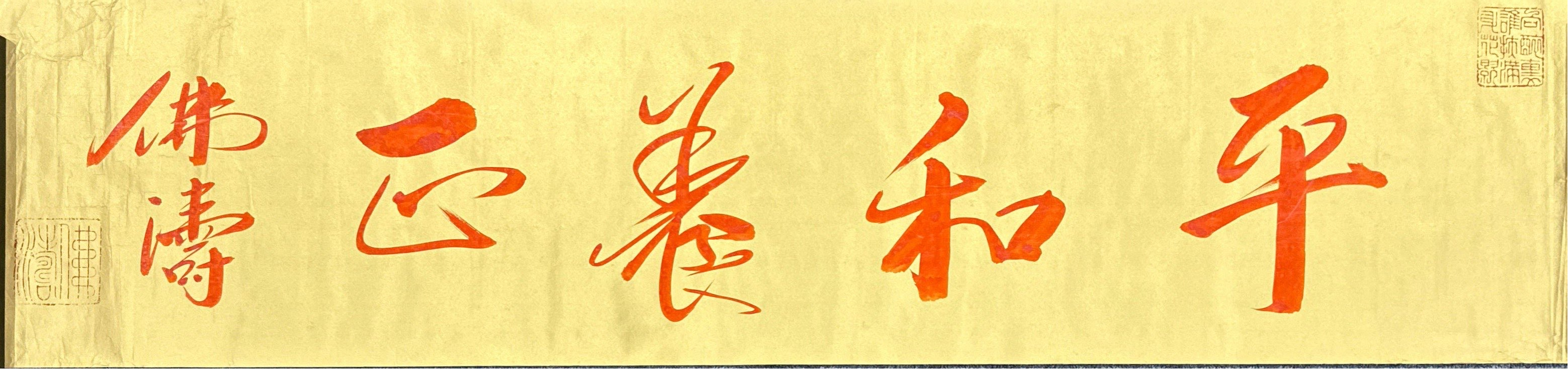 灵动笔势与朱黄配色相融合,于洒脱笔锋中传递出庄重感,在视觉冲击里蕴含着禅意平和的精神悠游,让书法不仅是笔墨形式的呈现,更成为人文与精神内涵的载体。