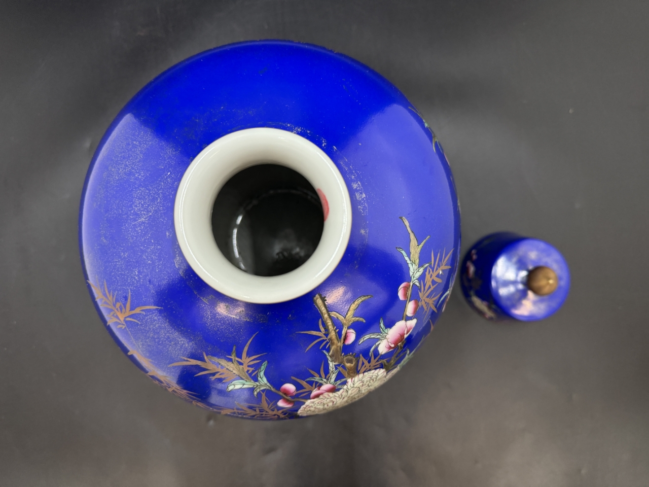 从釉色与装饰来看,瓶身以深邃而艳丽的蓝色为底色,犹如深邃的夜空,沉稳而高贵。