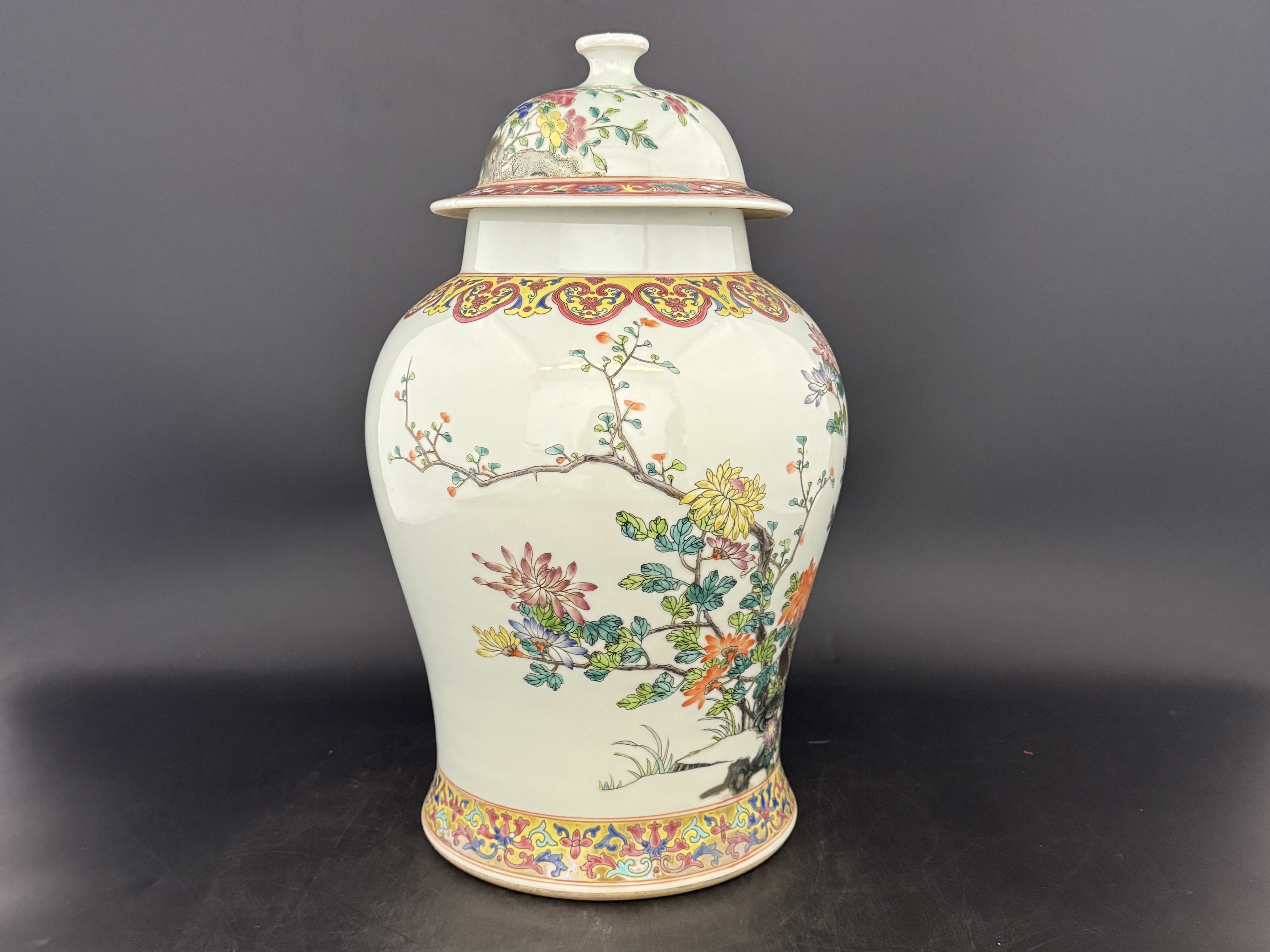 将军罐起源于明代,在清代尤为盛行,最初作为佛教僧侣的骨灰罐,后逐渐演变为家居陈设用品。粉彩工艺在清代康熙晚期创烧,雍正、乾隆时期达到鼎盛,以其色彩柔和、粉润秀雅的特点著称。这件粉彩将军罐,不仅体现了当时高超的制瓷工艺和绘画水平,还蕴含着丰富的文化内涵,对于研究清代瓷器的发展演变、装饰艺术以及社会文化背景都具有一定的参考价值。其精美的外观和历史文化价值,也使其成为瓷器收藏爱好者眼中颇具吸引力的藏品。