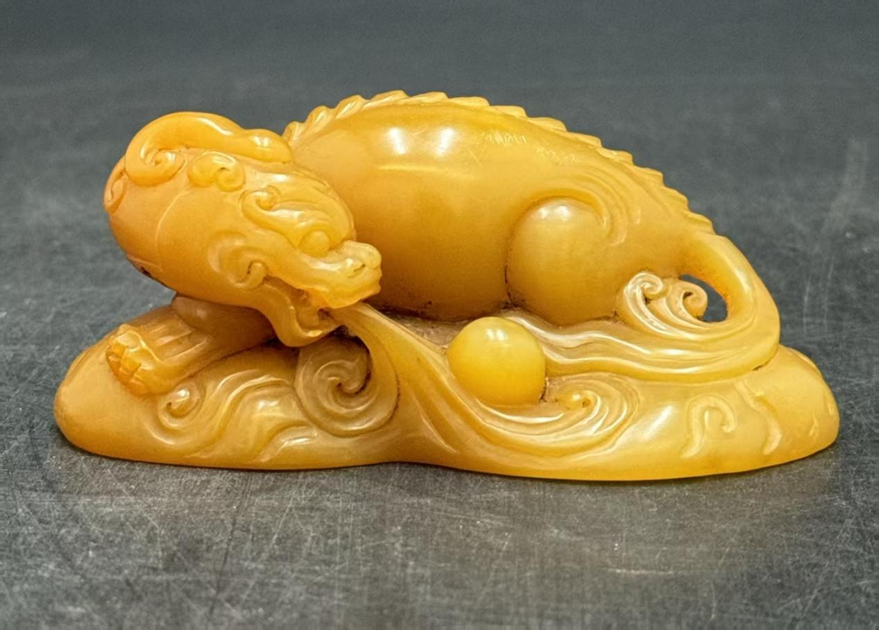 田黄为“石中之帝”,集天地灵秀,乃寿山石珍品,向为藏家追捧。此件重230克的清代田黄石瑞兽摆件,是田黄艺术与清代工艺的精妙融合,更是传世雅藏的重量级典范。