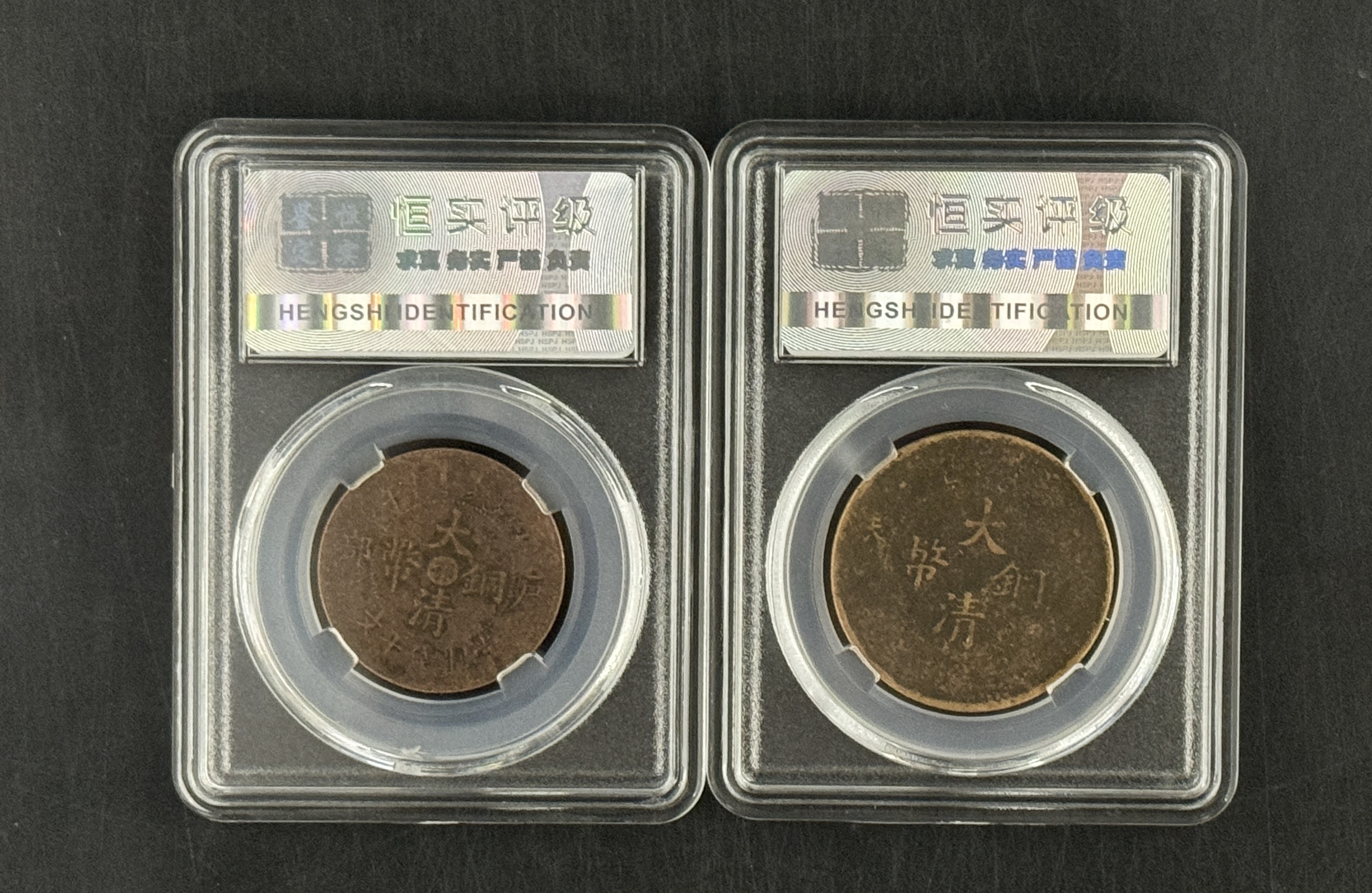 它们不仅反映了晚清铸币技术从手工到机械的跨越,更承载着辛亥革命前夕的社会动荡 —— 部分版式因时局突变未及大规模流通,成为 “王朝末路” 的历史碎片。从钱币的文字、龙纹到包浆,每一处细节都是晚清历史的 “微观切片”。这两枚大清铜币不仅是财富的载体,更是可触摸的历史记忆,值得每一位钱币爱好者与历史研究者珍藏品鉴。