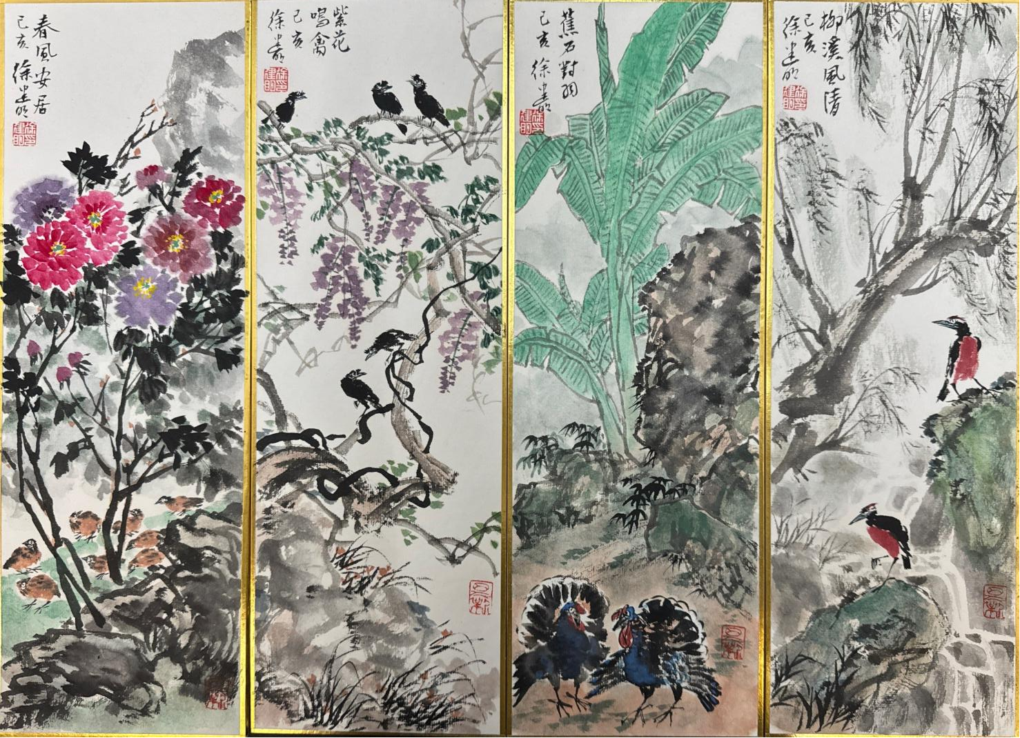 徐建明的这组花鸟小四条屏,以精湛的笔墨技法与雅致的意境营造,展现了传统花鸟画在当代的创新与传承,是其艺术风格的典型体现。