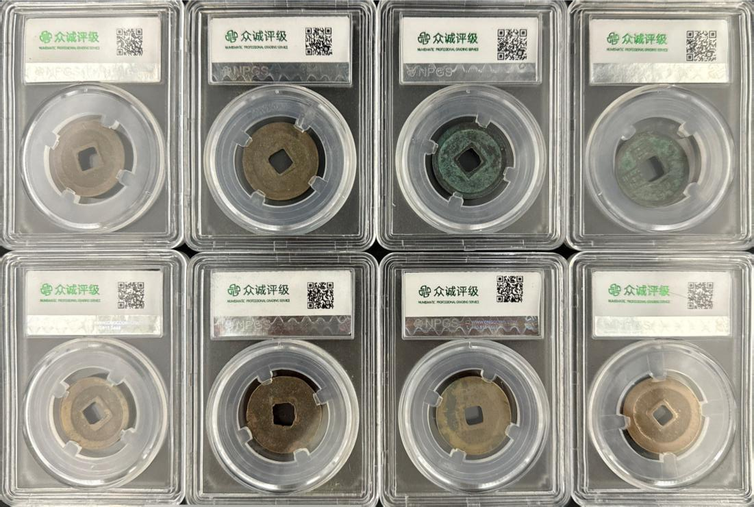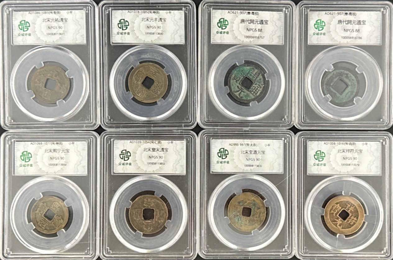 这套钱币实现了“唐代奠基+北宋繁荣” 的货币史断代覆盖 ,且每个品种都是对应时代的 “标杆式钱币”(如开元通宝的流通量与影响力、元丰通宝的版式多样性)。加之评级公司的保真背书,它既是古钱币收藏爱好者 “入门断代收藏” 的优质标本,也是研究唐宋货币制度、书法艺术的 “微型数据库”,兼具历史价值、艺术价值与收藏投资价值。综上,这套评级古钱币是“品种经典性、品相极致性、收藏体系性” 的完美结合,堪称古钱币收藏领域的 “精品组合范本”。