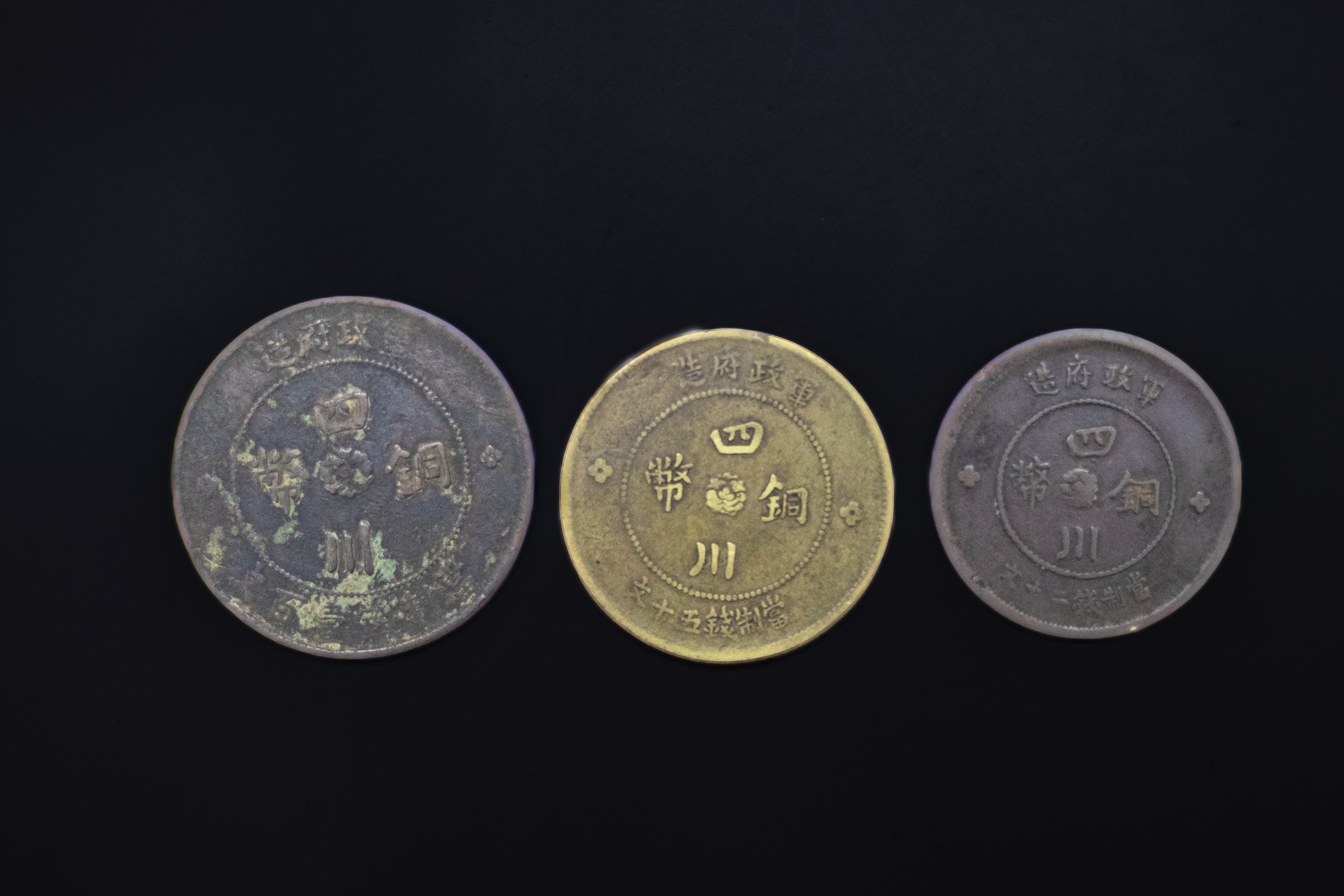 四川铜币军政府造当制钱一百文,以其雄浑大气的身姿脱颖而出。正面 “四川铜币” 四字,刚健而不失古朴,仿佛在诉说着巴蜀大地的沧桑变迁。中心芙蓉花,在岁月的洗礼下,依旧娇艳欲滴,每一片花瓣都雕刻得栩栩如生,尽显工艺之精妙。珠圈外,“军政府造” 与 “当制钱壹百文” 遥相呼应,左右星花宛如夜空中闪烁的星辰,为其增添了几分神秘色彩。背面的 “汉” 字,笔锋苍劲有力,它不仅仅是一个简单的文字,更是民族觉醒的象征,承载着四川人民对新时代的向往。