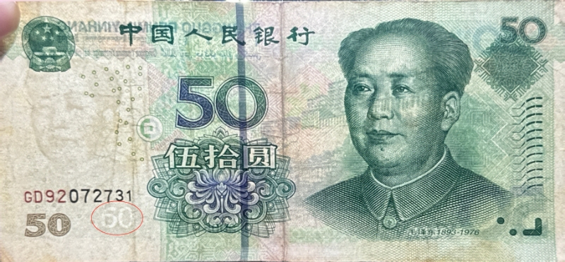 水印错版50元人民币