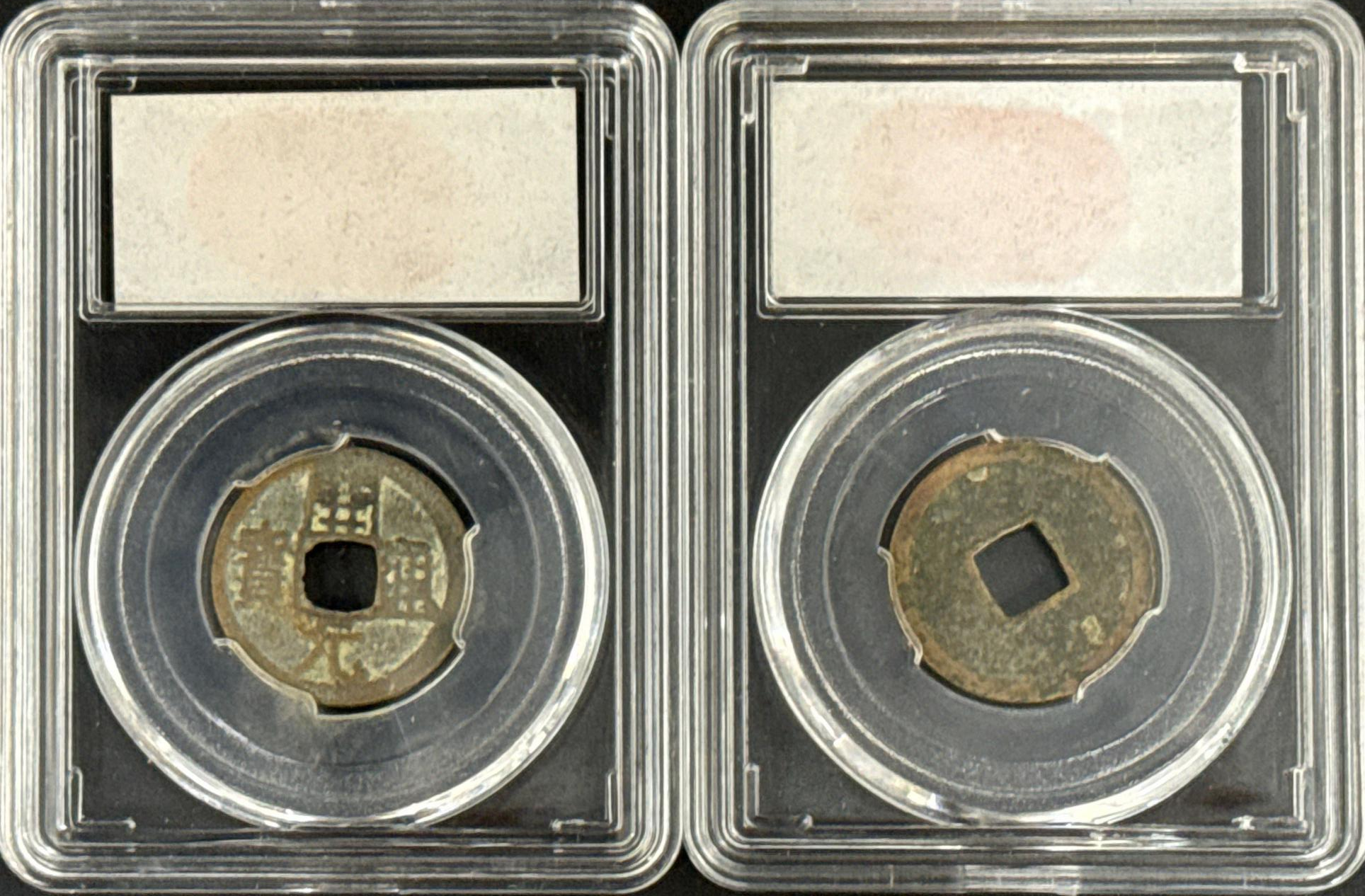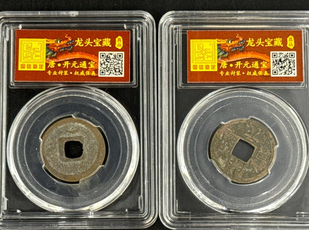 当这两枚封装在评级盒中的开元通宝落于掌心,千年前长安铸币坊的烟火气仿佛扑面而来 —— 一枚是盛唐流通的标准制式,另一枚则是藏家趋之若鹜的背月版,