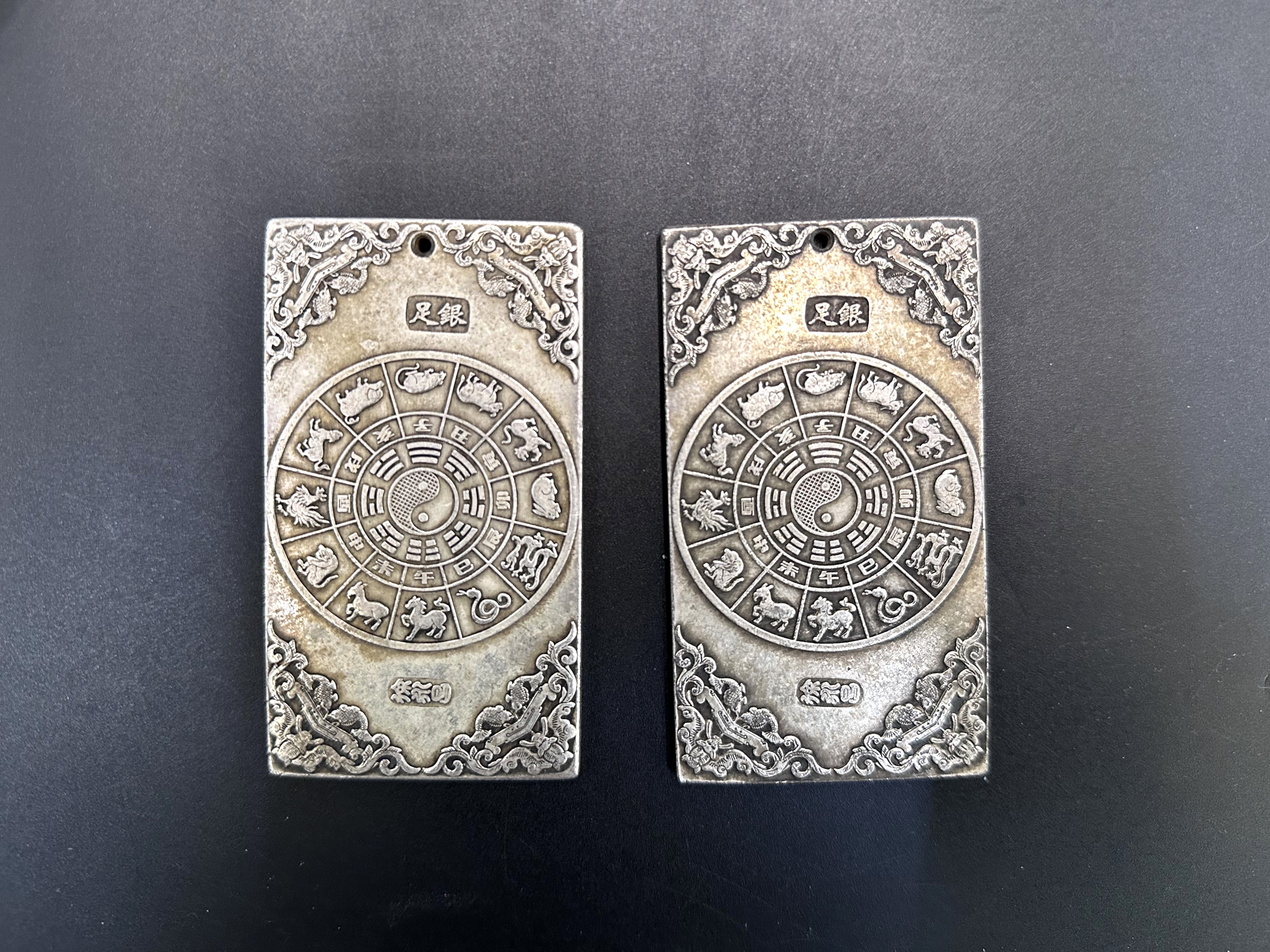 “徐永昌印”的十二生肖八卦纹饰银质腰牌一对