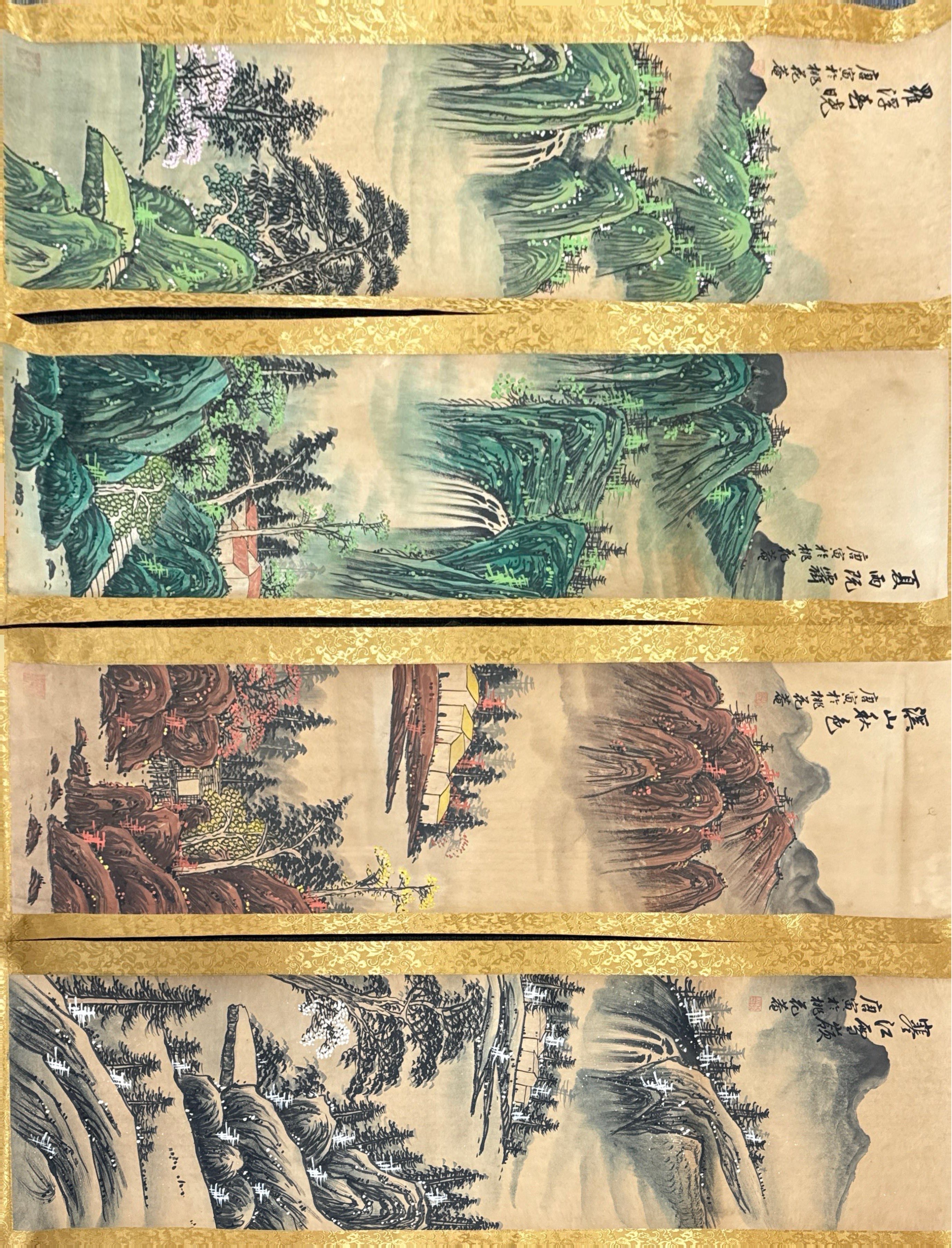 唐寅款四季山水四条屏
